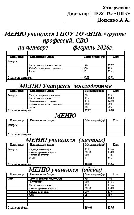 Ежедневное меню