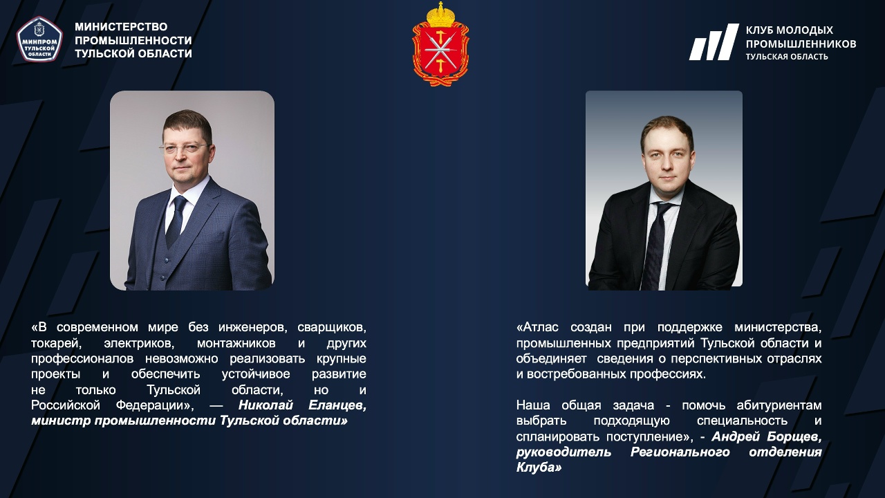 Тульское региональное отделение Клуб молодых промышленников совместно с Министерство промышленности Тульской области и промышленными предприятиями региона сформировали Атлас профессий промышленных предприятий (disk.yandex.ru/d/PAqD5YhO…).