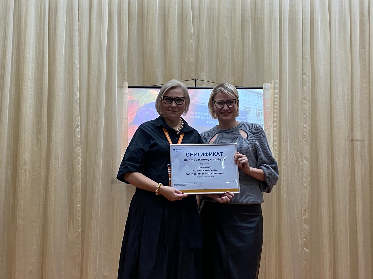 В честь юбилея АО «НАК «АЗОТ» представители вручили колледжу сертификат на интерактивную трибуну. 🎁